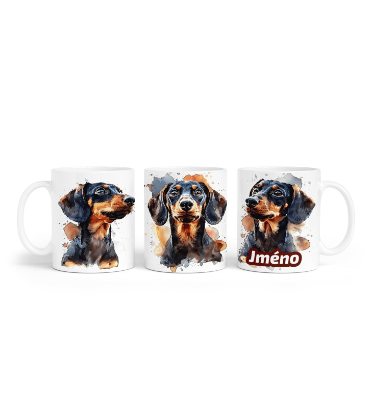 Tento hrníček s motivem jezevčíka je ideálním dárkem pro všechny milovníky tohoto jedinečného plemene! S možností přidat jméno vašeho pejska se stane hrníček originálním a osobním kouskem. Vyroben z kvalitní keramiky v čistě bílé barvě, díky které krásně vynikne jak motiv, tak i text. Objem 330 ml je perfektní pro ranní kávu, čaj nebo horký čokoládový nápoj.
