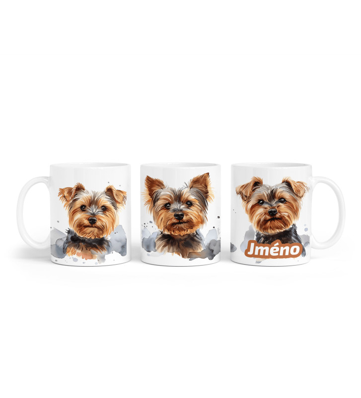 Tento hrníček s roztomilým motivem jorkšíra je ideální pro každého milovníka tohoto plemene! Máte možnost přidat jméno vašeho psa, díky čemuž bude hrníček zcela osobní a originální. Hrníček je vyroben z kvalitní keramiky v bílé barvě, která nechá vyniknout jak motivu, tak i textu. S objemem 330 ml je perfektní na kávu, čaj nebo jakýkoli jiný oblíbený nápoj.