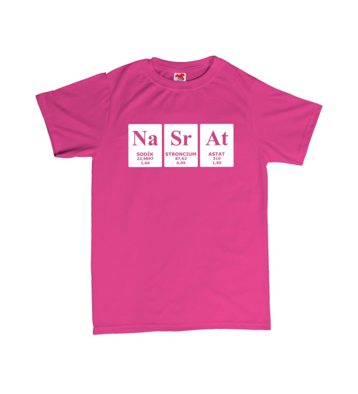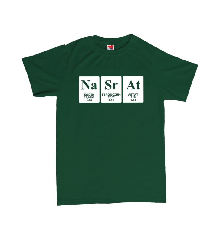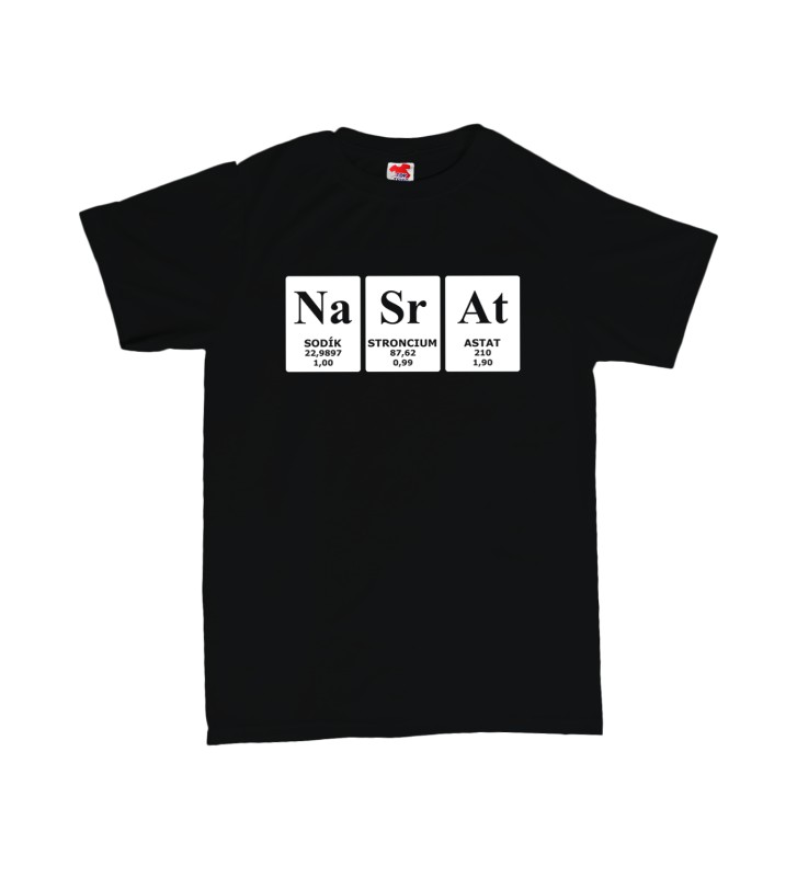 Pro milovníky chemie a vtipného humoru máme pánské tričko, které jistě potěší! Toto tričko je vyrobeno z kvalitní bavlny a je k dostání v různém barevném provedení. Nese vtipný nápis 'Na Sr At,' což je narážka na chemické značky sodíku (Na), síry (Sr) a astatu (At). Toto tričko nejen vyjadřuje vaši lásku k chemii, ale také nabízí jedinečný a inteligentní vtip. Je ideální pro každodenní nošení nebo jako skvělý dárek pro chemiky a vědecké nadšence.