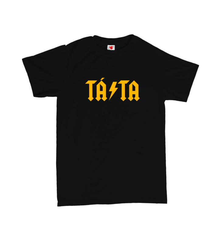 Táta, co drží proud celé rodiny. Tričko Táta ve stylu ikonického loga AC/DC je dárek pro tatínka, který byl cool dřív, než se to stalo módou. Vtipné a stylové pánské tričko s potiskem — skvělý dárek k narozeninám nebo Dni otců pro rockového tátu.