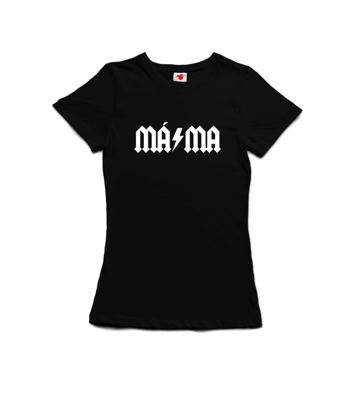 Máma na plný plyn. Tričko Máma ve stylu slavného AC/DC loga je dárek pro maminku, co zvládá všechno a ještě u toho rockuje. Vtipné tričko s potiskem pro každou mámu s osobností — skvělý dárek k narozeninám, MDŽ nebo Dni matek.